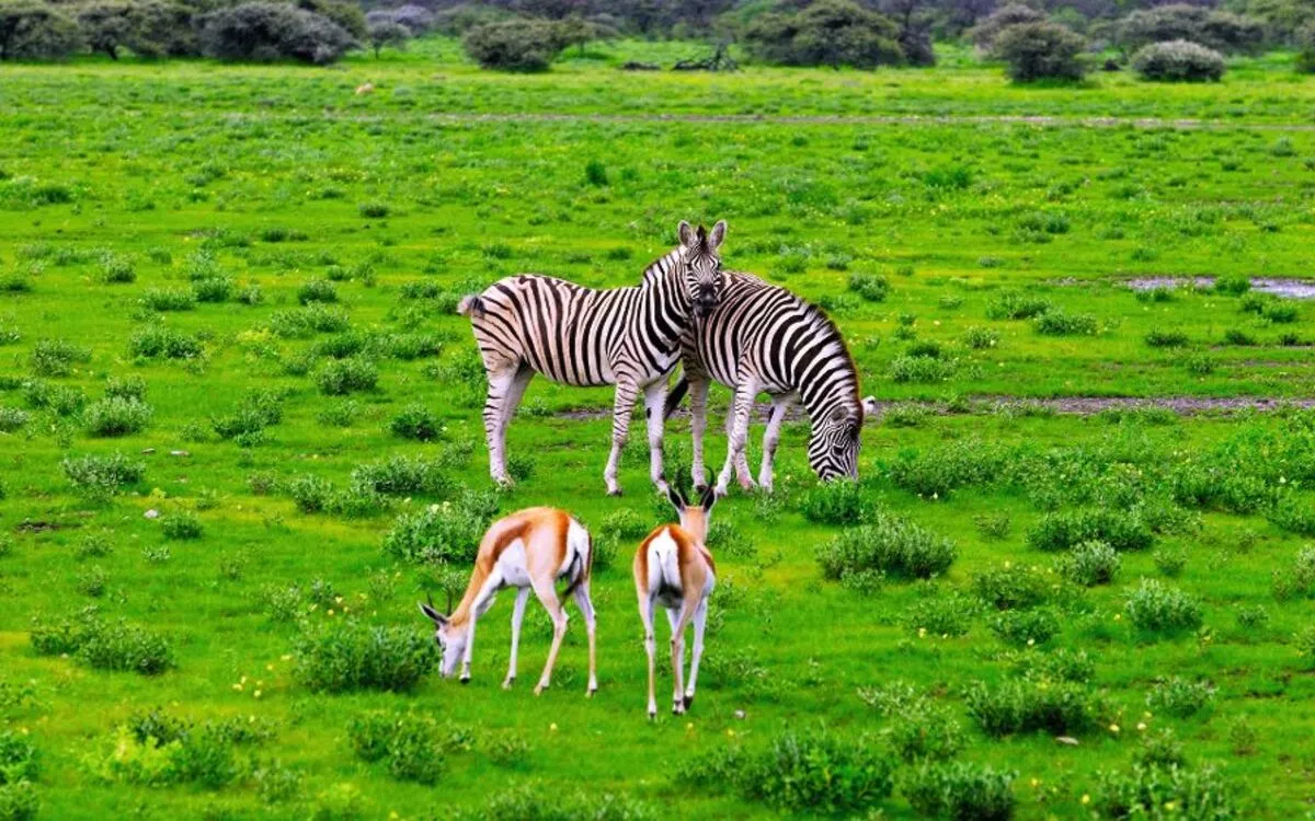 Nach dem Frühstück fahren Sie mit dem Bus zu Ihrer Lodge im Etosha-Nationalpark (ca. 150 km). Geniessen Sie die Annehmlichkeiten Ihrer Unterkunft, bevor Sie auf Wunsch in offenen Safari-Fahrzeugen auf Pirsch gehen (gegen Aufpreis). Es erwartet Sie eine einmalige Safari: Sie können Elefanten, Gnus, zahlreiche Vögel und andere Wildtiere besonders an den Wasserlöchern aus der Nähe beobachten. Mit etwas Glück sehen Sie auch Löwen oder die seltenen Leoparden. Die Tierherden des Etosha-Parks sind fast ganzjährig auf die Wasserlöcher angewiesen, deshalb bietet der mehr als 22.000 km² große Park ideale Voraussetzungen für Tierbeobachtungen. Nach diesem aufregenden Tag fahren Sie zur nahe gelegenen Lodge, wo Sie heute Nacht residieren. Das Abendessen findet heute als traditionelles Boma statt.