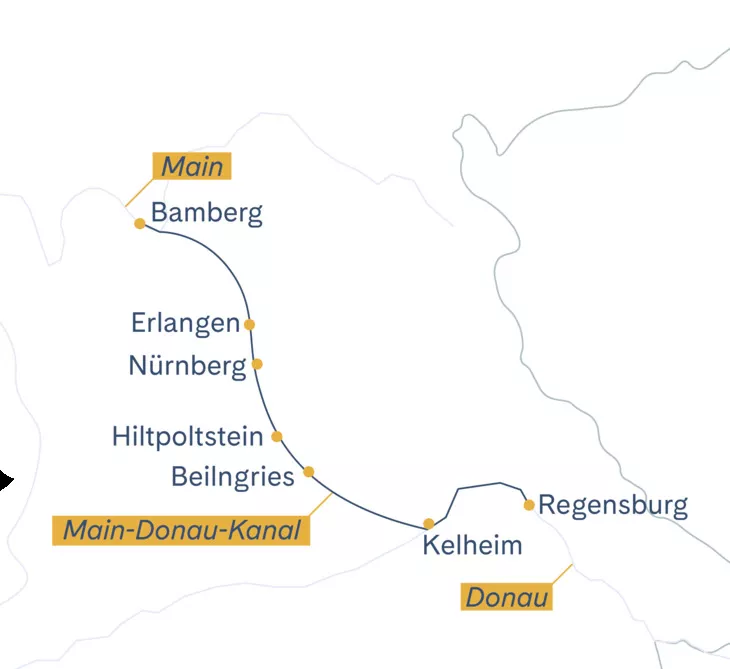 Zwischen Flussromantik und Kulturgenuss: Entlang des Main-Donau-Kanals und der Donau entdecken Sie Süddeutschlands schönste Seiten - einerseits bequem an Bord und andererseits aktiv im Velosattel. Aus dem charmanten Bamberg führt Sie die Route durch eindrucksvolle Landschaften, traditionsreiche Orte und malerische Altstädte bis in die UNESCO-Weltkulturerbestadt Regensburg. Auf gut ausgebauten Radwegen radeln Sie durch grüne Flusstäler und vorbei an historischen Klöstern, barocken Bauwerken sowied gemütlichen Biergärten. Nach einem erlebnisreichen Tag erwartet Sie Ihr komfortables Schiff zum Entspannen, Geniessen und Erholen. Diese Reise verbindet Bewegung mit Genuss, Geschichte mit Natur und bietet echtes Bayern-Feeling auf charmante Weise.
