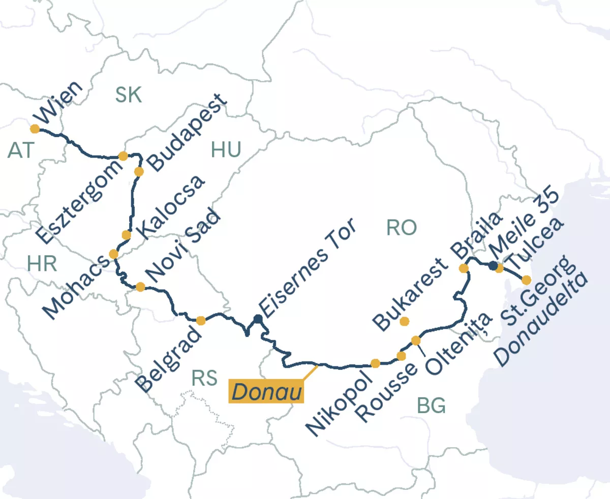 Eindrückliche Flussreise auf der Donau vom Schwarzen Meer bis Wien. Besondere Höhepunkte sind das Donaudelta mit seiner faszinierenden Flora und Fauna sowie das "Eiserne Tor".