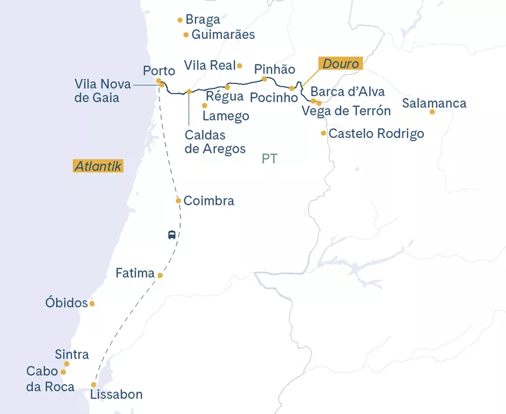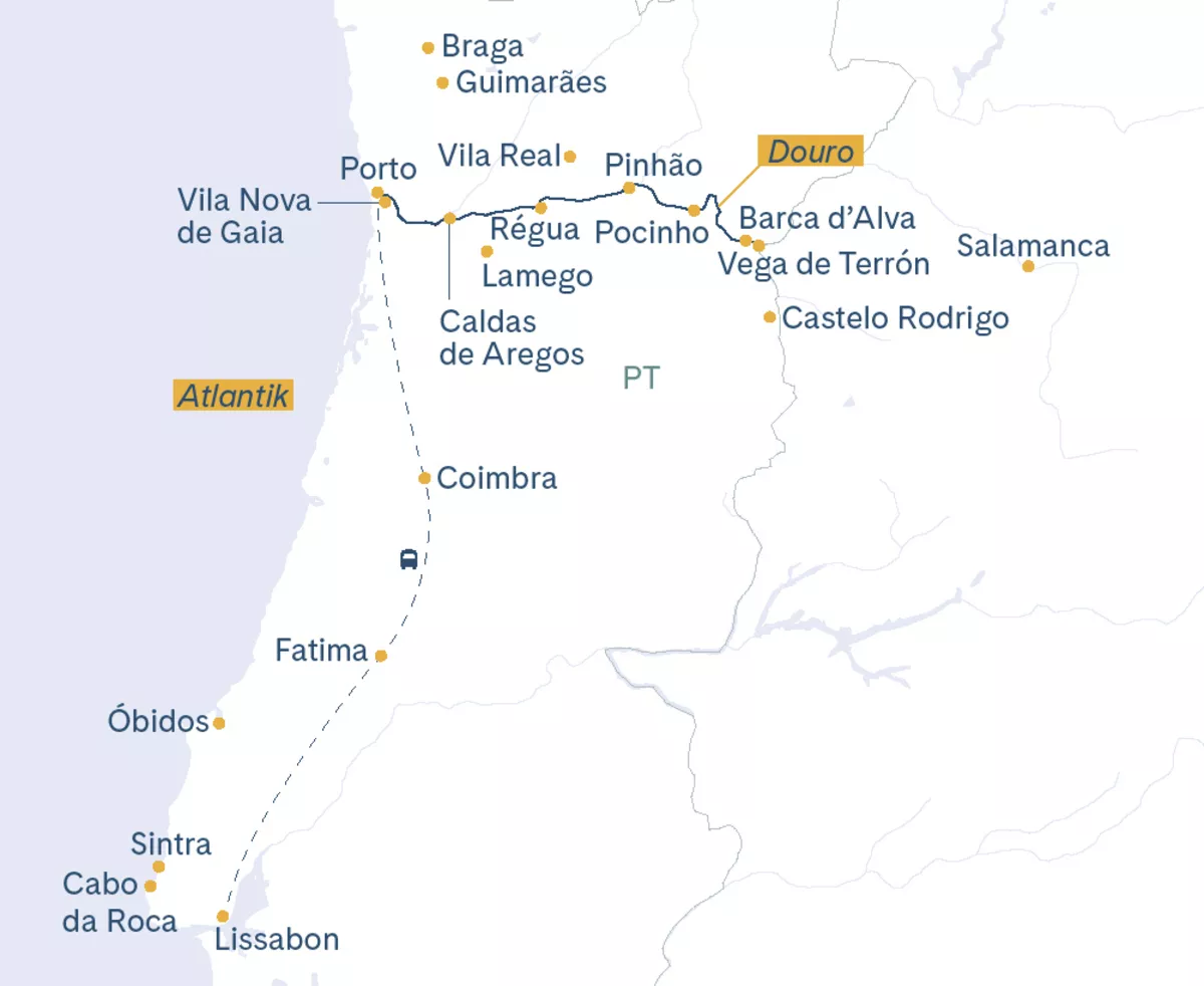 Aufgrund der einzigartigen Schönheit der Douro-Flusslandschaft und der kulturellen Vielfalt Portugals wurde das Dourotal zum UNESCO-Weltkulturerbe erklärt. Freuen Sie sich auf ein farbenfrohes Potpourri aus melancholischen Fado-Klängen und mitreissenden Folkloredarbietungen. Auf dem Programm stehen ausserdem ein Besuch des prachtvollen Mateus-Palastes, ein Abstecher in die berühmte Pilgerstadt Lamego sowie ein Ausflug ins spanische Salamanca – gekrönt von einer temperamentvollen Flamenco-Show.