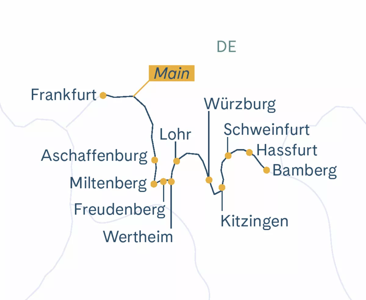 Morgens erreichen Sie per Schiff Hassfurt mit seiner schönen historischen Altstadt. Sie liegt zwischen zwei Naturparks und ist Standort reizvoller Sakralbauten wie der spätgotischen Ritterkapelle und der Stadtpfarrkirche mit Figuren von Tilman Riemenschneider. Hier steigen Sie auf Ihr Velo und fahren in die ehemalige Reichsstadt Schweinfurt.