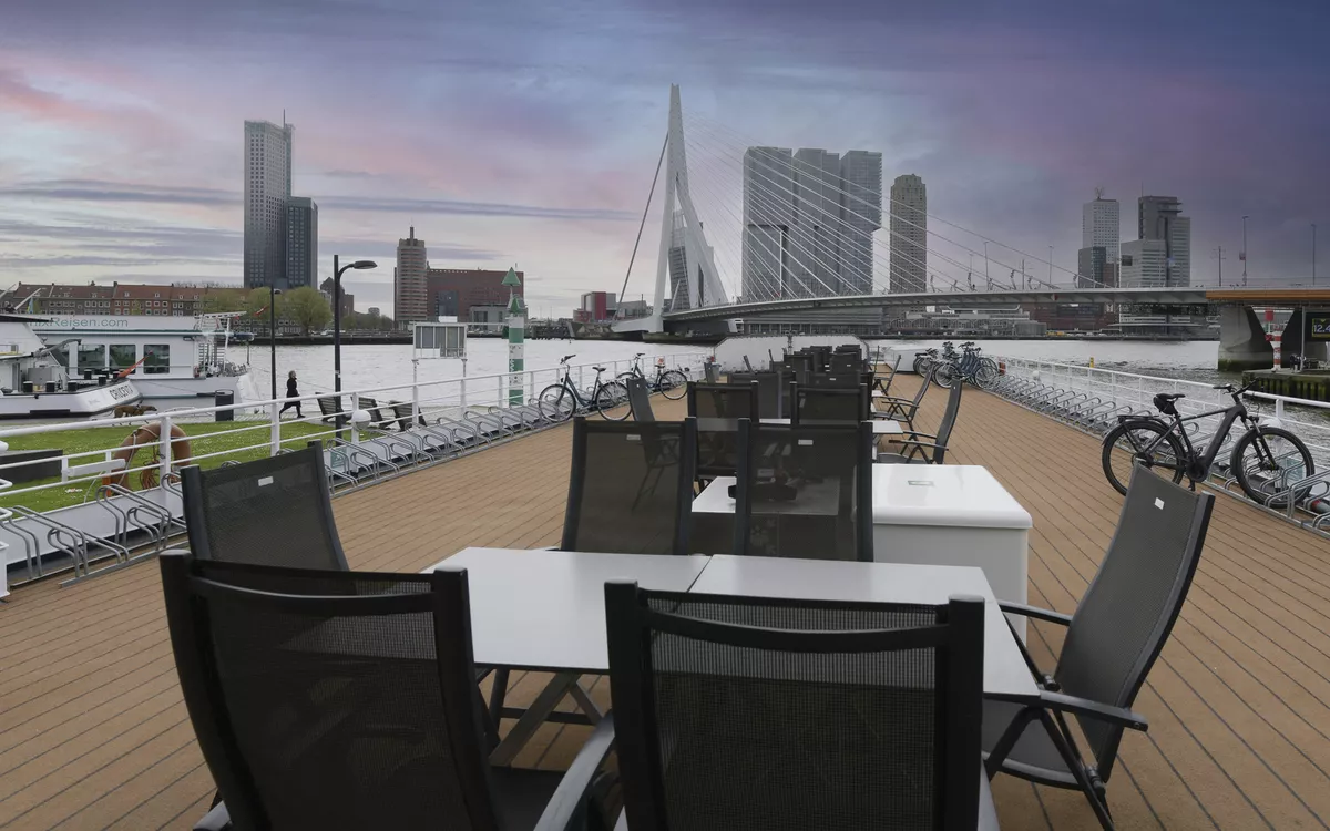 Frühmorgens Schifffahrt nach Breukelen, wo die erste Velotour startet. Sie fahren am zauberhaften gewundenen Fluss Vecht entlang, dessen Ufer von eindrucksvollen Schlössern, herrschaftlichen Villen und besonderen Teehäusern gesäumt ist. Sie folgen der Vecht bis ins Zentrum von Utrecht, wo Sie die schöne historische Innenstadt besichtigen können: der Dom mit seinem hohen Turm, Grachten, hübsche Geschäfte und gemütliche Kneipen laden ein, entdeckt zu werden. Am Nachmittag geniessen Sie die Schifffahrt nach Rotterdam.
