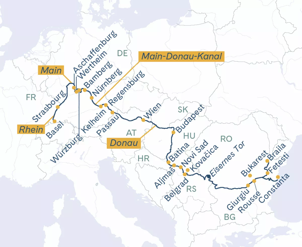 Von Basel führt diese einmalig schöne Flusskreuzfahrt entlang von unterschiedlichen Naturlandschaften, verträumten Orten und pulsierenden Metropolen des Rheins, des Mains, des Main-Donau-Kanals und der Donau bis zum Schwarzen Meer. Jeder der einzelnen zu passierenden Flüsse wird Sie mit seinen Eigenheiten und abwechslungsreichen Uferlandschaften begeistern. Während 19 Tagen erleben Sie nicht nur eine Reise durch unterschiedliche Länder und Kulturen, sondern geniessen auch täglich den Luxus Ihres schwimmenden Hotels, der MS Thurgau Prestige, mit allen Annehmlichkeiten an Bord.