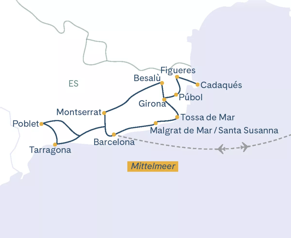 Katalonien im Nordosten Spaniens ist eine Welt für sich! Landschaftlich, kulinarisch, aber auch künstlerisch hat diese autonome Region Spaniens sehr viel für seine Besucher zu bieten. An der sonnenverwöhnten Küste um Barcelona fühlten sich Künstler wie Picasso, Gaudí und Dalí besonders wohl und hinterliessen atemberaubende Kunst und Bauwerke. Lassen Sie sich bei dieser Rundreise von der künstlerischen Seele Kataloniens verführen. Die Hauptstadt Barcelona ist sehr stark geprägt durch unterschiedliche Vertreter des Modernisme wie Gaudí. Den Anblick des architektonischen Meisterwerkes - der Sagrada Familia - werden Sie nie wieder vergessen! Aber auch landschaftlich hat Katalonien einiges zu bieten. Während dieser Rundreise lernen Sie auch die Weinregion Penedès, die Berglandschaft um Montserrat und die sonnige Costa Brava kennen.