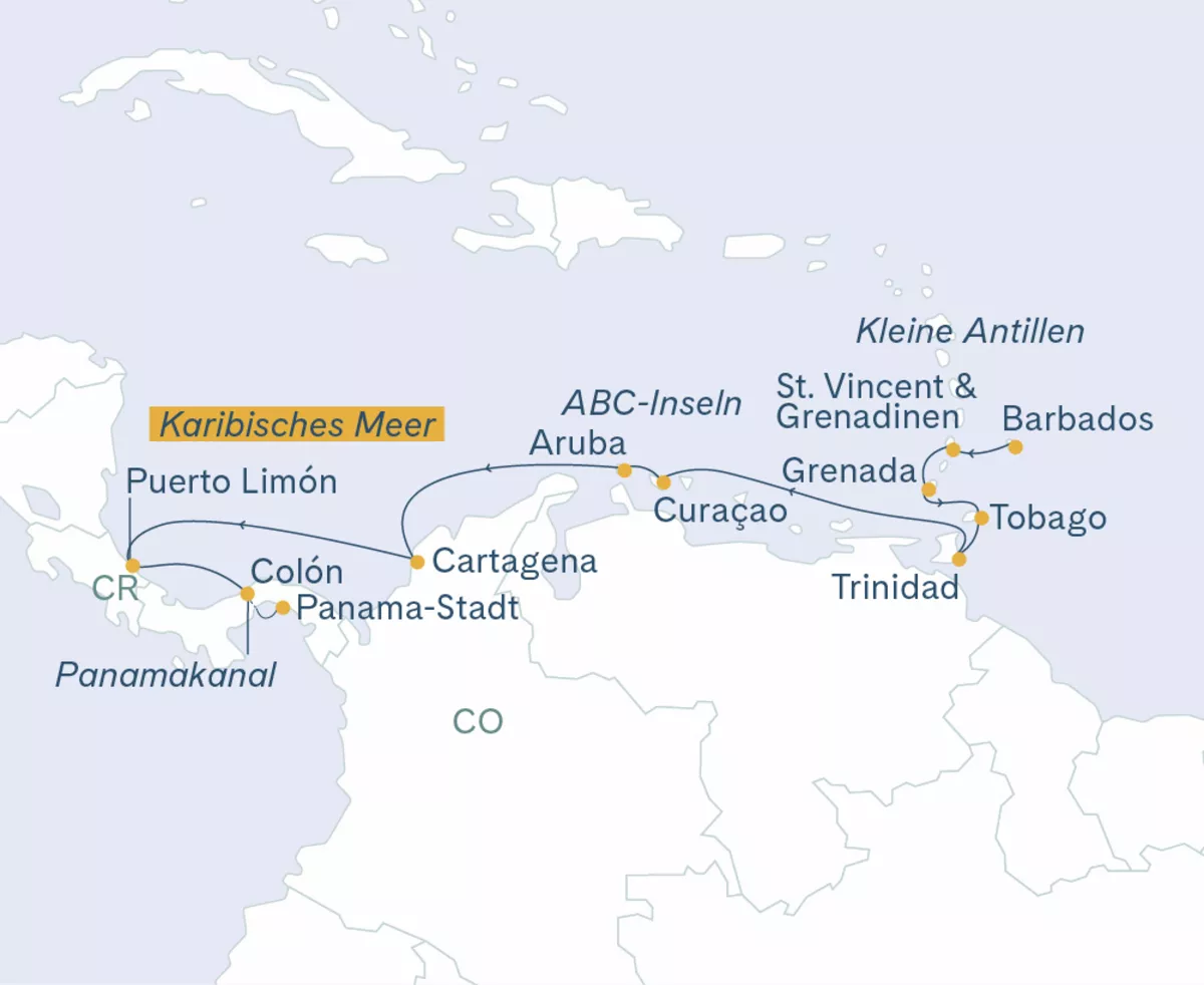 Traumhafte Ziele reihen sich auf dieser Kreuzfahrt mit der Vasco da Gama wie Perlen an einer Kette. Mit viel Zeit zum Entdecken erleben Sie zunächst die Karibik: St. Vincent und die Grenadinen, Grenada, Trinidad und Tobago, Curaçao sowie Aruba vermitteln karibisches Lebensgefühl in seiner schönsten Form – entspannt, bunt und voller sonniger Wärme. Doch damit nicht genug: Kolumbien, Costa Rica und Panama begeistern mit eindrücklicher Natur und faszinierender Kultur. In Costa Rica können Sie mit etwas Glück ein Faultier in freier Wildbahn beobachten – ein stiller Star des Regenwalds und ein besonderes Erlebnis für Naturfreunde. Die farbenfrohe, blumige Altstadt von Cartagena gehört zum UNESCO-Weltkulturerbe und lädt zum Flanieren und Staunen ein. Ein weiterer Höhepunkt dieser Reise ist die Fahrt durch den legendären Panamakanal – ein wahres Wunderwerk der Technik und Ingenieurskunst, das seit über 100 Jahren den Atlantik mit dem Pazifik verbindet. Ein Erlebnis, das man einmal im Leben gesehen haben will.