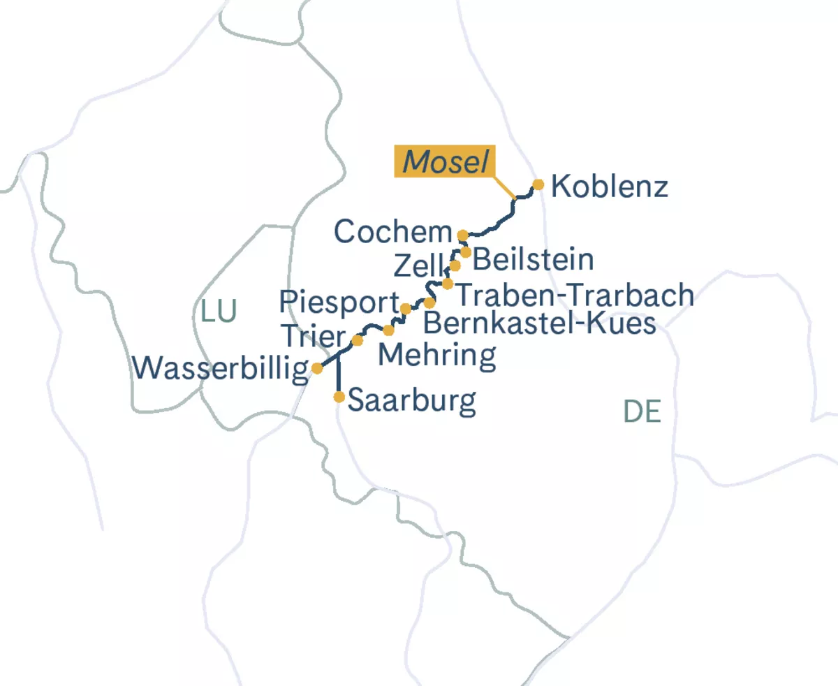 Deutschlands wunderschöne Flusslandschaften an Mosel und Saar laden Sie ein! Kombinieren Sie abwechslungsreiche Radtouren mit dem angenehmen Aufenthalt an Bord der MS Olympia. Erkunden Sie während dieser 8-tägigen Reise unter anderem Saarburg, das bisweilen auch „Klein Venedig“ genannt wird. Die Stadt ist jedoch keineswegs einziges Highlight dieser Reise für Romantiker und Genussmenschen. Wunderschöne Fachwerkhäuser, Weinberge, die Porta Nigra in Trier, der Altarm der Saar: Sie alle werden kleine Highlights sein. Während Sie tagsüber aktiv sind, folgt Ihnen das Schiff entlang des Flusses, um Ihnen dann am Tagesziel wieder als Ihr Hotelschiff zur Verfügung zu stehen. Mosel und Saar präsentieren sich in bestem Licht.