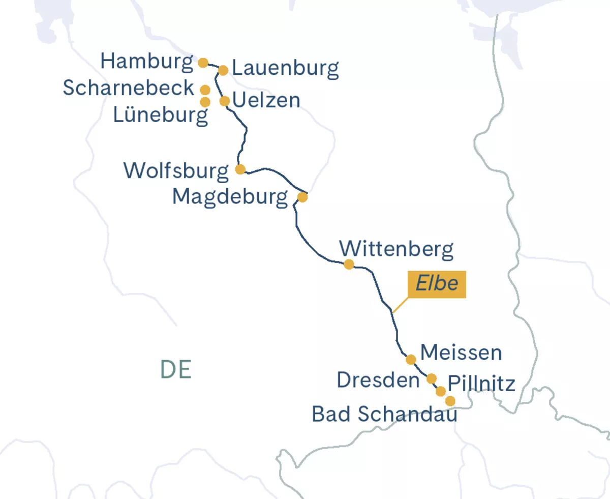 Individuelle Anreise nach Basel. Bahnfahrt mit der Gruppe im direkten ICE nach Hamburg. Transfer und Einschiffung. Nach dem Willkommens-Apéro heisst es «Leinen Los» und stimmungsvolle Fahrt nach Lauenburg, wo das Schiff über Nacht liegen bleibt.