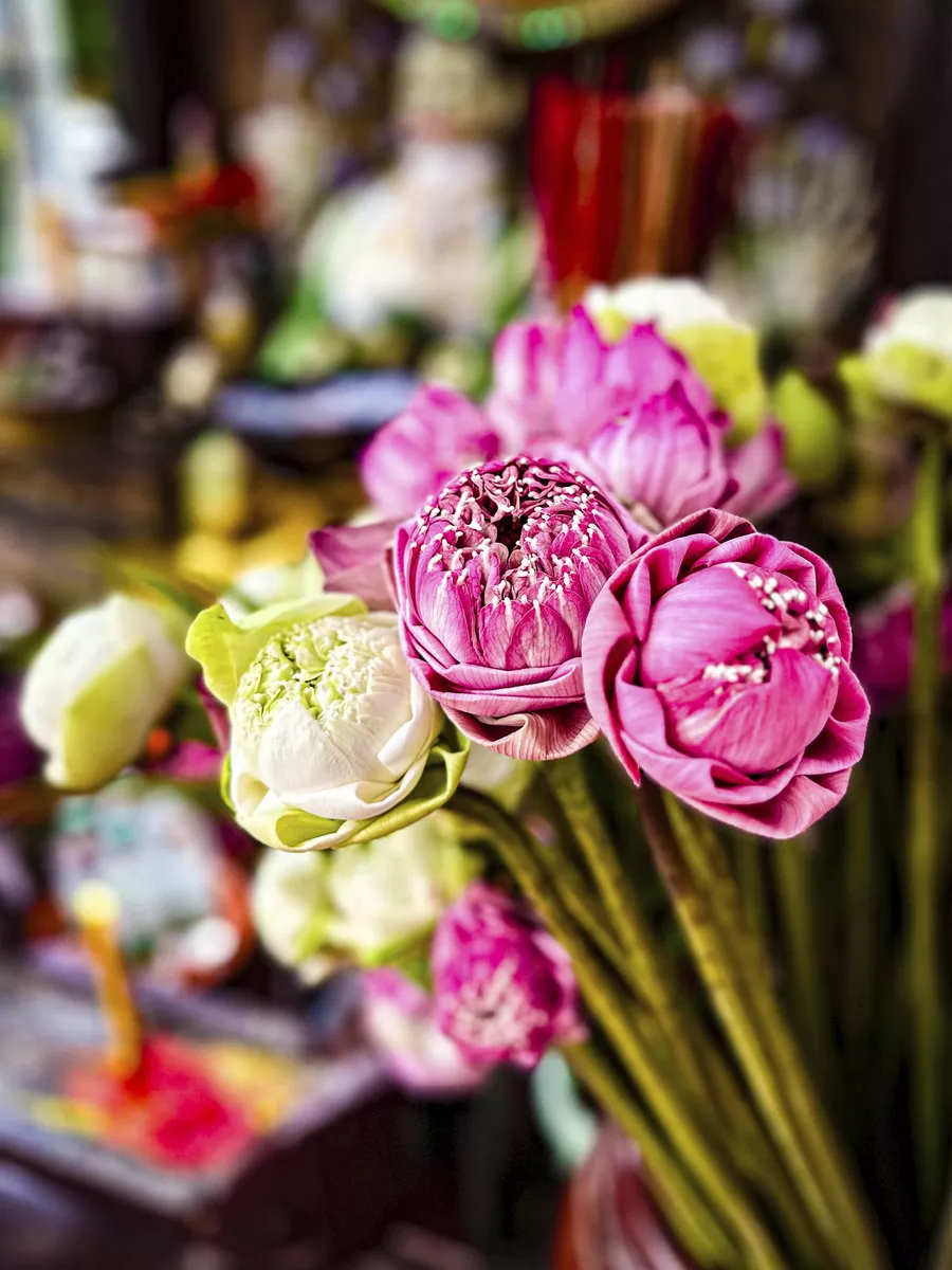 Für viele Kambodschaner ist das Leben im Kloster ein wichtiger Bestandteil ihrer Kindheit, da das Mönchsleben relativ fle-xibel ist und keine lebenslange Verpflichtung erfordert. Die Versammlungshalle ist bunt bemalt und zeigt Szenen aus den früheren Leben Buddhas, um den Gläubigen moralische Ge-schichten zu vermitteln. Anschliessend unternehmen Sie eine Tuk-Tuk-Fahrt, um den Seidenproduktionsprozess auf der Insel zu erkunden und mehr über dieses traditionelle Handwerk zu erfahren.