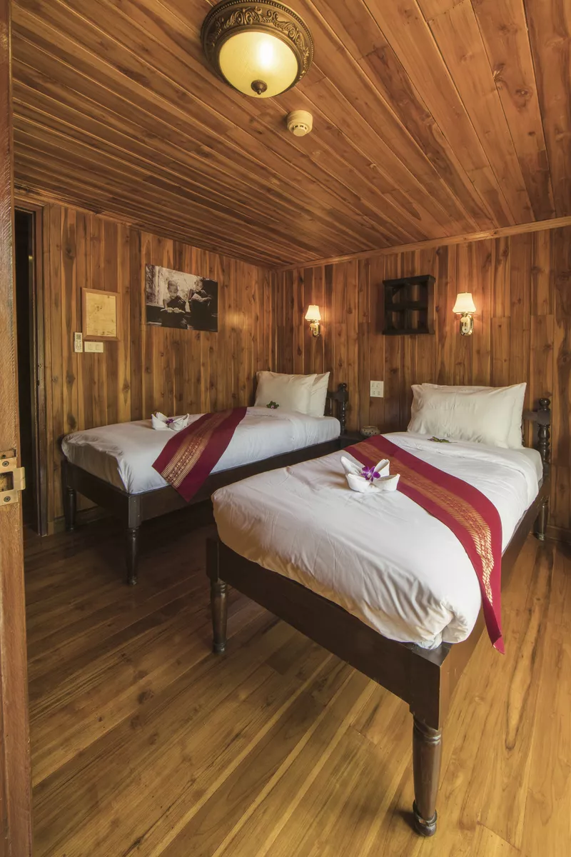 Das exklusive, stilvolle und gemütliche Flusskreuzfahrtschiff verfügt über zwei Decks. Alle 15 Kabinen sind in Teakholz und Mahagoni gehalten und sind mit Dusche/WC, Föhn und Klimaanlage ausgestattet. Die Classic-Kabinen (ca. 12 m²) auf dem Hauptdeck und Superior-Kabinen (ca. 16 m²) auf dem Haupt- und Oberdeck verfügen über einen französischen Balkon. Die Deluxe-Kabinen auf dem Oberdeck (ca. 22 m²) besitzen einen kleinen Privatbalkon, der zum Verweilen einlädt.